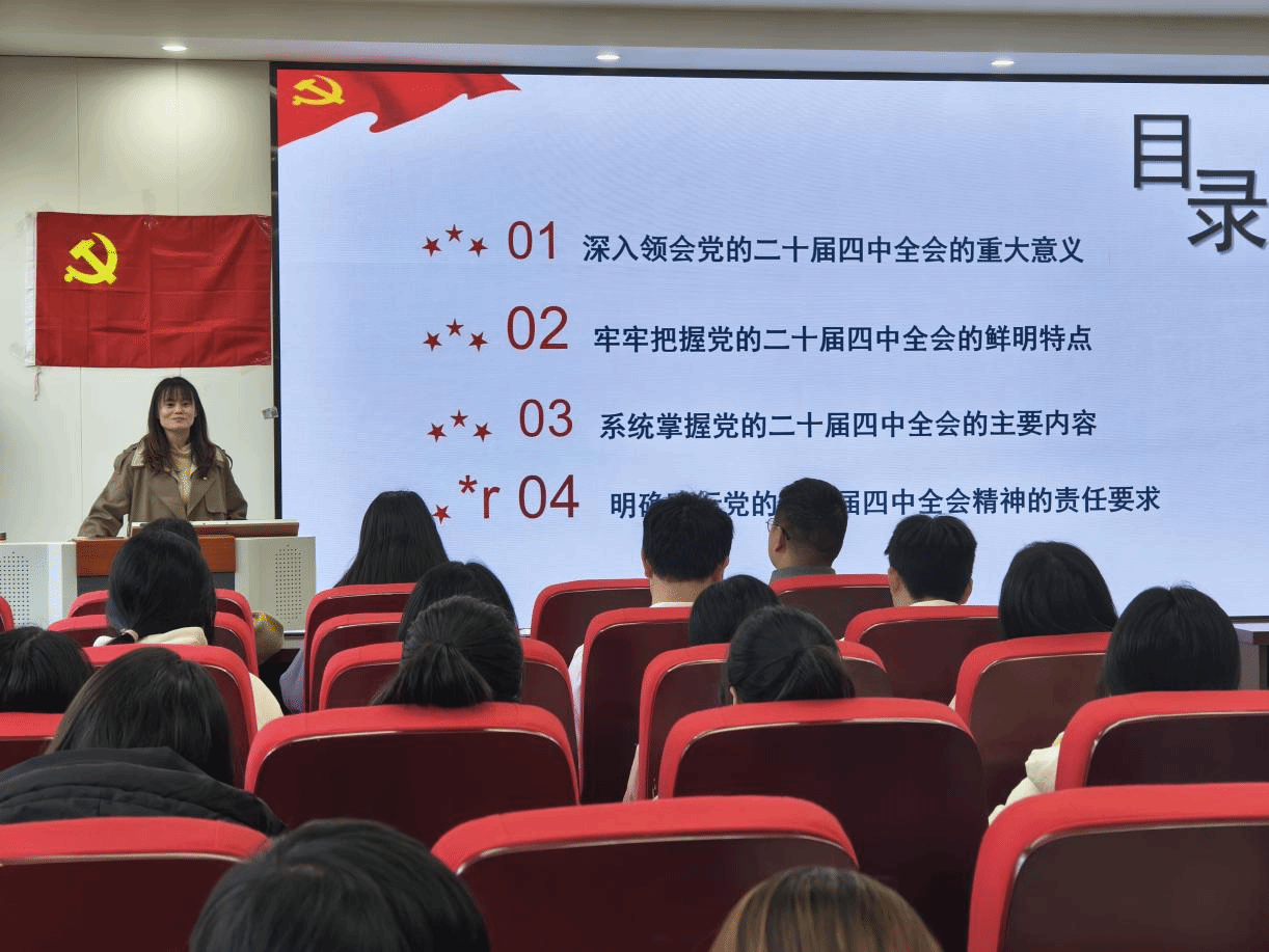 活动伊始,党支部书记刘国琴以“深入学习贯彻党的二十届四中全会精神”为题讲授专题党课。党课围绕党的二十届四中全会的重大意义、鲜明特点、主要内容与责任要求等内容展开,引导全体党员深刻领悟党的二十届四中全会精神的政治内涵与实践价值,切实把理论领悟转化为凝聚思想共识的强大动力。为精准把握国家发展战略导向,党支部组织委员郭文佳带领全体党员专题学习《习近平:关于〈中共中央关于制定国民经济和社会发展第十五个五年规划的建议〉的说明》,多维度解读文件核心要义,帮助党员清晰认识个人成长与国家发展的同频共振关系。立足地方发展实际,支部党员围绕四川“十五五”发展专题会议精神进行集中研讨。通过研讨厚植了全体党员“扎根基层、服务地方”的意识。为强化思想政治工作引领,郭文佳同志再次领学《中国共产党思想政治工作条例》。在学习中,重点聚焦青年党员使命,为党员规范工作流程、创新工作方法提供了明确指引,助力支部构建常态化思政工作体系。活动最后,党员们围绕“思政工作创新与就业大事”展开主题交流。全体党员结合专业所学与实际经历,明确表示要切实把学习成效转化为服务同学、奉献社会的具体行动,在日常生活中践行共产党员的初心使命。