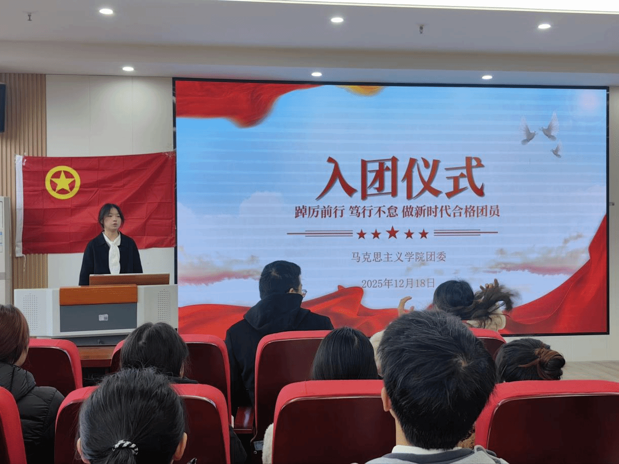 为增强团组织的凝聚力和向心力,坚定新团员理想信念与奋斗意志,2025年12月18日中午,宜宾学院马克思主义学院在硕勋楼903举行2025年下半年新团员入团仪式。马克思主义学院学工办主任、团委书记刘国琴,学工办副主任、团委副书记尼梦阳,优秀团员代表以及全体新团员参加仪式。