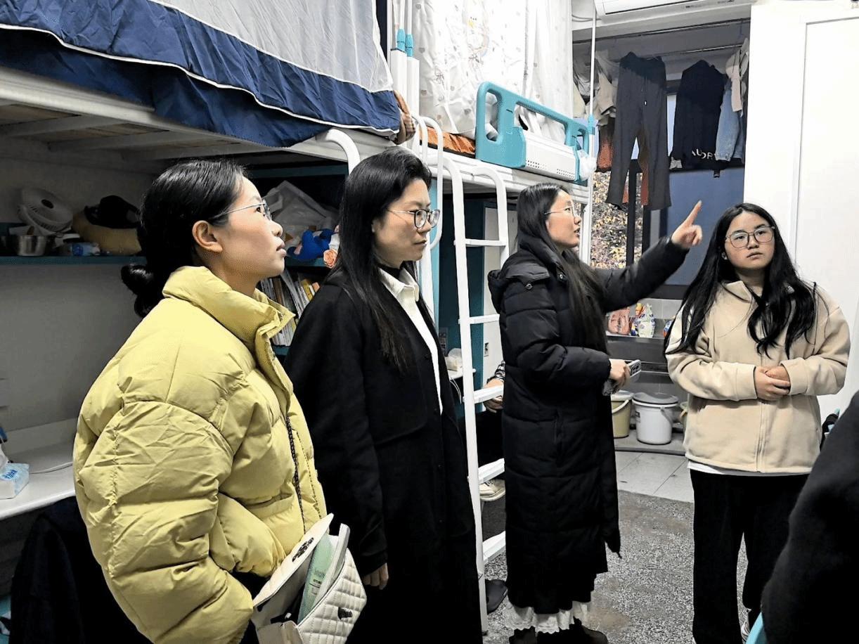 走访过程中,老师们对各宿舍进行了细致排查。一方面,关切询问同学们的生活起居,检查卫生状况,提醒大家养成良好生活习惯;另一方面,着重查看了是否存在违规使用大功率电器等情况,对发现的问题现场提出整改意见,督促学生立刻落实。竭仁贵书记仔细询问同学们的实习工作与求职情况,耐心倾听大家在实习和就业过程中遇到的困难与困惑,并鼓励毕业生主动打破思维局限,积极拓宽求职渠道,充分利用学校搭建的双选会等优质资源平台,勇于尝试新行业、新岗位。郑万敏书记还结合真实案例,耐心为学生讲解了违规用电带来的安全隐患,叮嘱大家务必提高警惕,自觉遵守宿舍安全条例。此外,老师们也贴心提醒同学们要做好冬季防寒保暖,保持宿舍整洁,合理安排作息,共同维护安全舒适的居住环境。