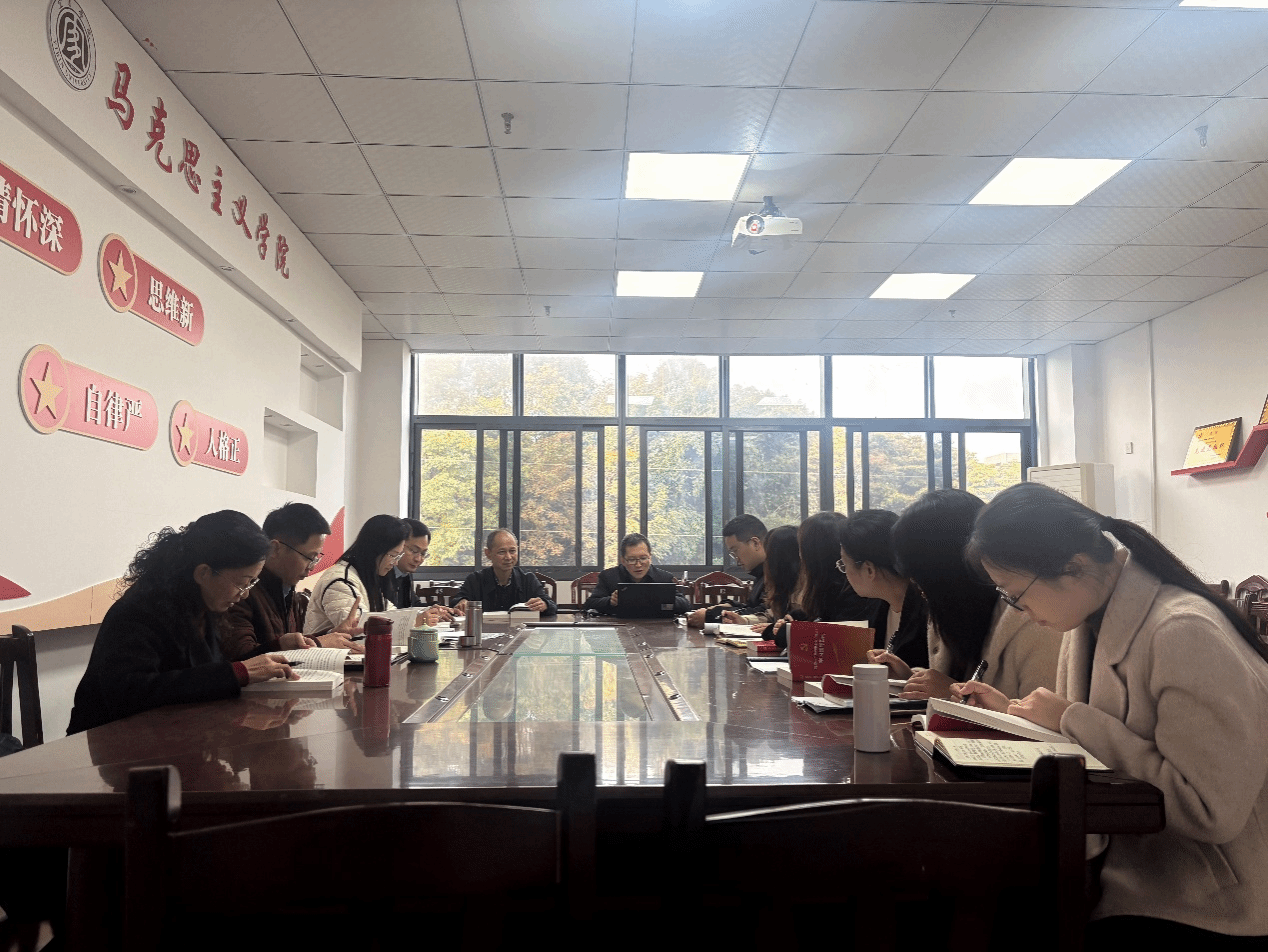 为深刻领会党的二十届四中全会精神核心要义,切实把思想和行动统一到党中央决策部署上来,2025年12月1日,马克思主义学院召开党委理论学习中心组(扩大)会,专题学习党的二十届四中全会精神。学院处科级干部、党支部书记、党政办教师及专职辅导员参加学习。本次学习会采取专题辅导学与深入研讨学的方式进行。