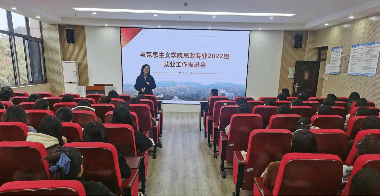 为深入学习贯彻习近平总书记来校视察重要指示精神,确保学生树立正确的择业就业观,提升自身竞争力,推动高质量就业,3月19日下午,思政专业2022级学生就业工作推进会在硕勋楼901教室举行,马克思主义学院副院长(主持工作)夏高发、党委副书记郑万敏、思政专业教研室主任邓佳、实验与创新中心主任王槐银和思政2022级学生参会。