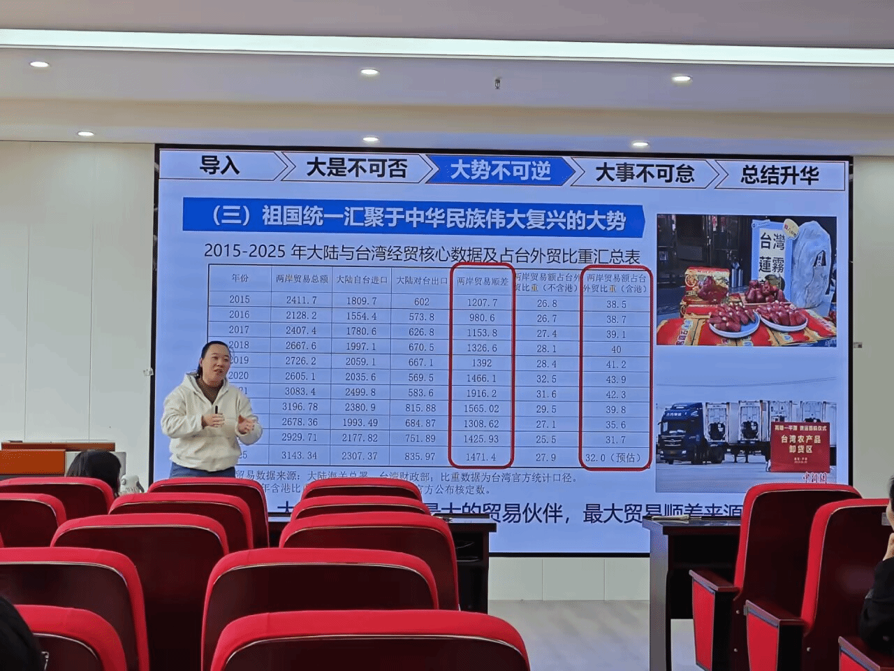 随后,2026年“形势与政策”教学研究会教学比赛特等奖获得者段孟琪老师带来以“揭台湾民调真相,促祖国统一大业”为题的教学展示,为参会教师们提供了直观的教学参考。