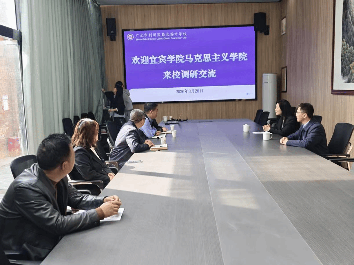 为深化与基础教育学校的教研合作,推动思政教育人才培养与教学实践深度融合,2026年3月28日上午,宜宾学院马克思主义学院副院长(主持工作)夏高发、党委副书记郑万敏一行赴广元市利州区蜀北英才学校开展访企拓岗活动。