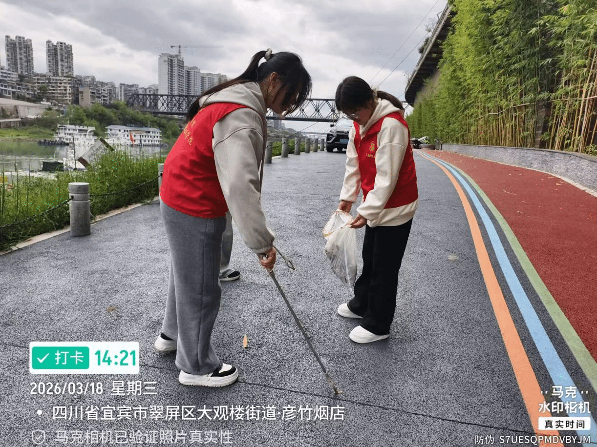 为深入弘扬雷锋精神,推动生态文明理念融入青年实践,2026年3月18日,宜宾学院马克思主义学院青年志愿者协会联合“宜小理”团干部工作室,在宜宾市金沙江沿岸组织开展“学雷锋,做志愿,情满天府启新程——三月学雷锋,净护金沙江”主题志愿服务活动。马克思主义学院青协志愿队积极参与,以实际行动践行服务精神,守护长江上游生态安全。