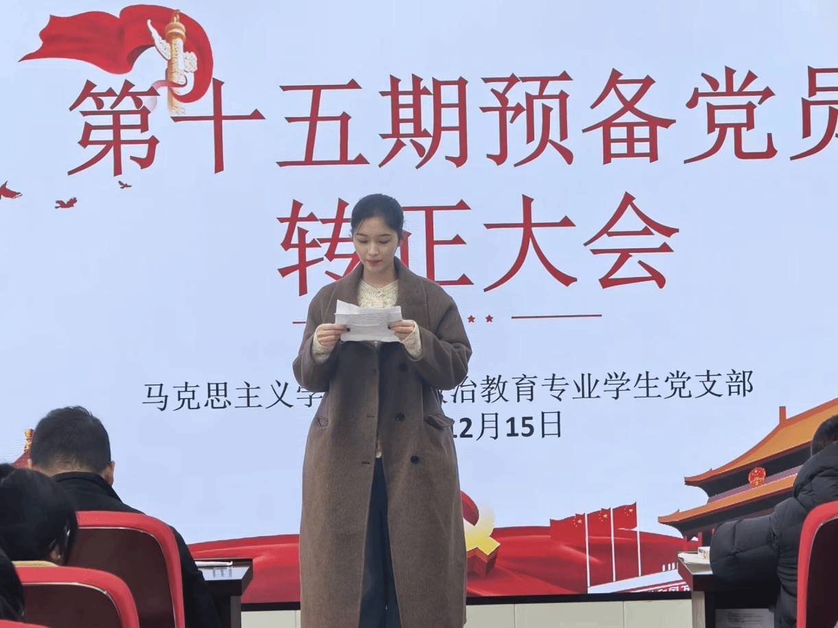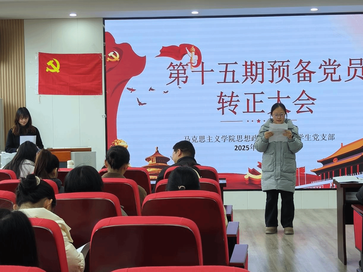 为进一步增强党组织的战斗力和凝聚力,提升党员的责任感和使命感,2025年12月15日,马克思主义学院思想政治教育专业学生党支部在硕勋楼903召开预备党员转正大会,此次会议由学生党支部书记刘国琴主持,党支部全体党员参会。
