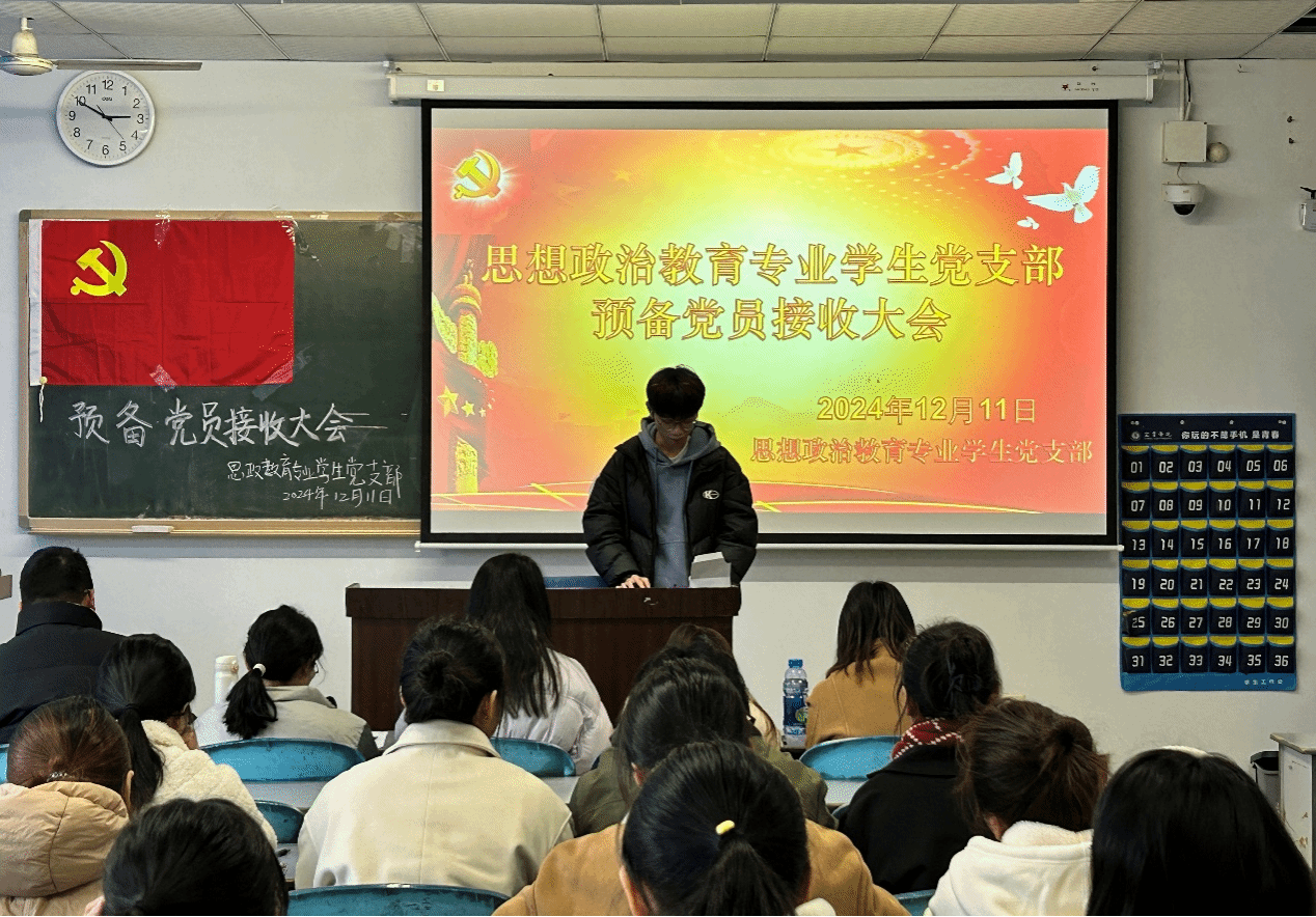 为进一步壮大党员队伍,为党组织的发展注入新鲜血液,增强党支部凝聚力和战斗力,2024年12月11日14:30,马克思主义学院思想政治教育专业学生党支部在硕勋楼409召开党员大会。本次会议由学生党支部书记邓佳主持,组织委员刘鑫、纪检委员尼梦阳、教师党员袁兴、刘虹利、郭文佳以及支部学生党员到场参会。