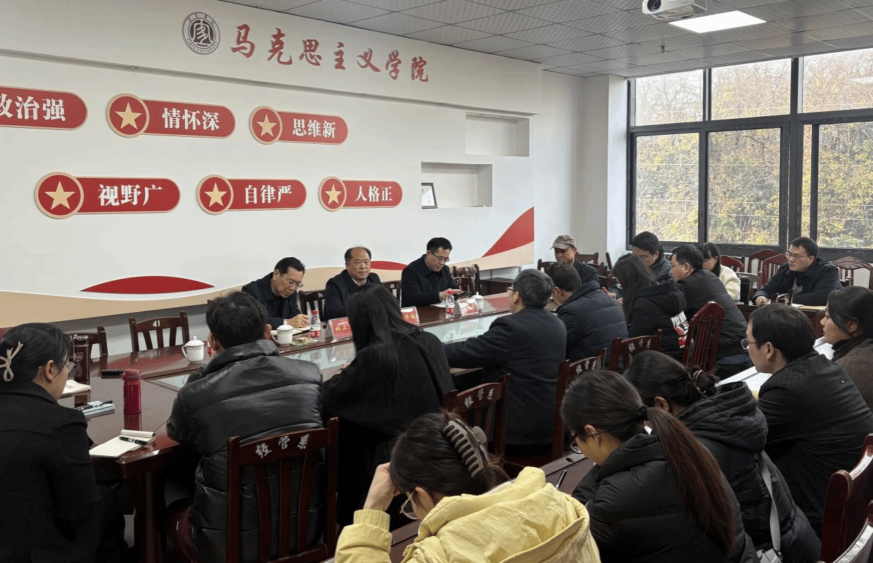 为深入学习贯彻习近平总书记来校视察重要指示精神,落实思政课高质量建设发展目标,1月28日下午,学校党委副书记、院长杜正聪深入马克思主义学院开展调研指导,党委常委、党委宣传部部长陈世海与党委办公室/院长办公室主任刘明海、教务处处长柳福提陪同调研。调研座谈会聚焦“如何真正提升思政课效能”核心议题,与学院领导班子、教研室主任、科级干部、骨干教师代表等深入交流。