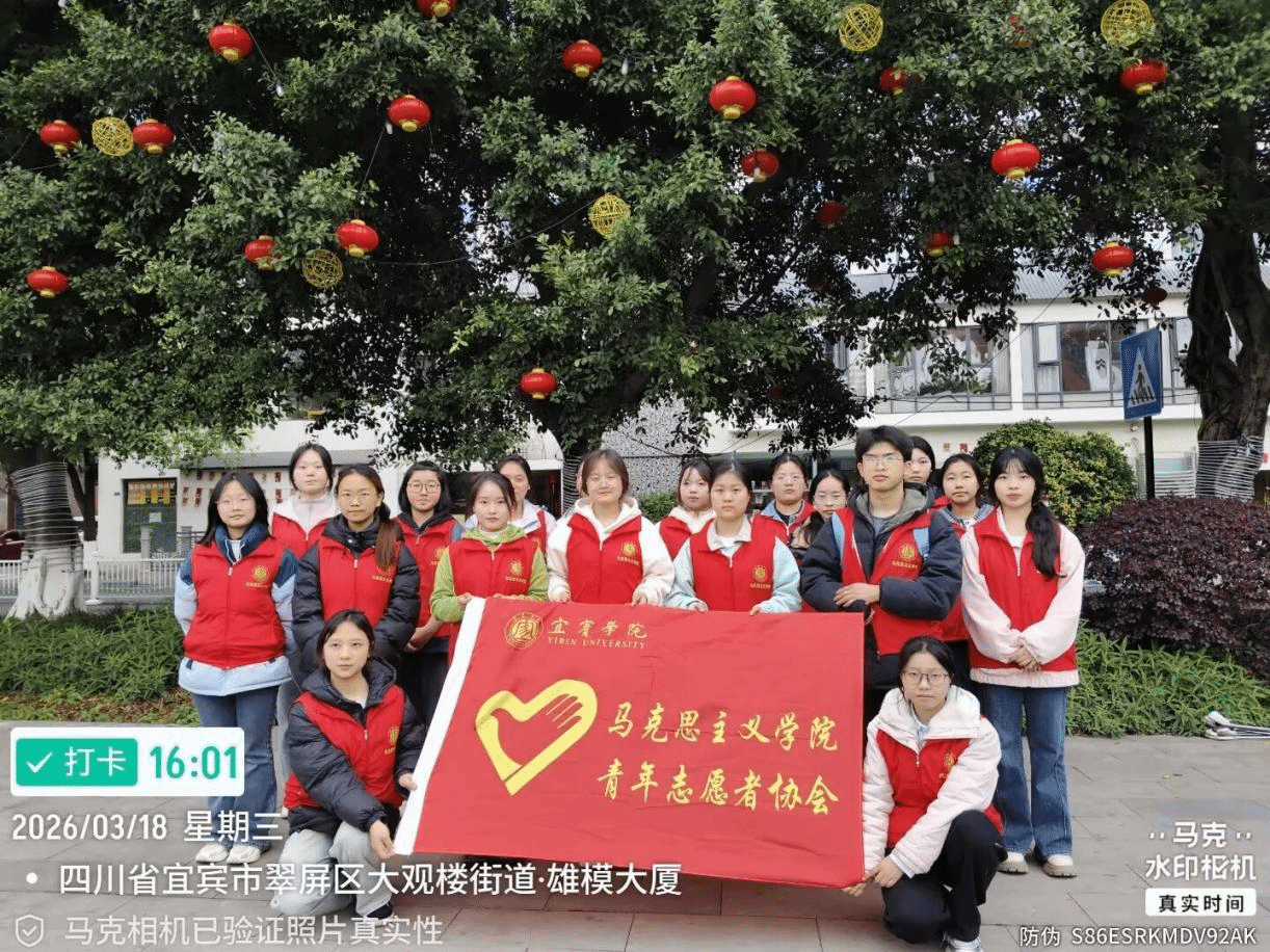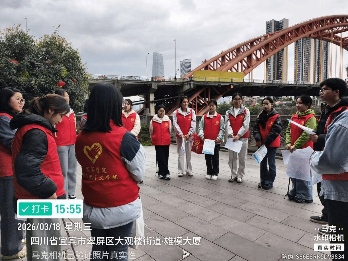 为深入弘扬雷锋精神,推动生态文明理念融入青年实践,2026年3月18日,宜宾学院马克思主义学院青年志愿者协会联合“宜小理”团干部工作室,在宜宾市金沙江沿岸组织开展“学雷锋,做志愿,情满天府启新程——三月学雷锋,净护金沙江”主题志愿服务活动。马克思主义学院青协志愿队积极参与,以实际行动践行服务精神,守护长江上游生态安全。