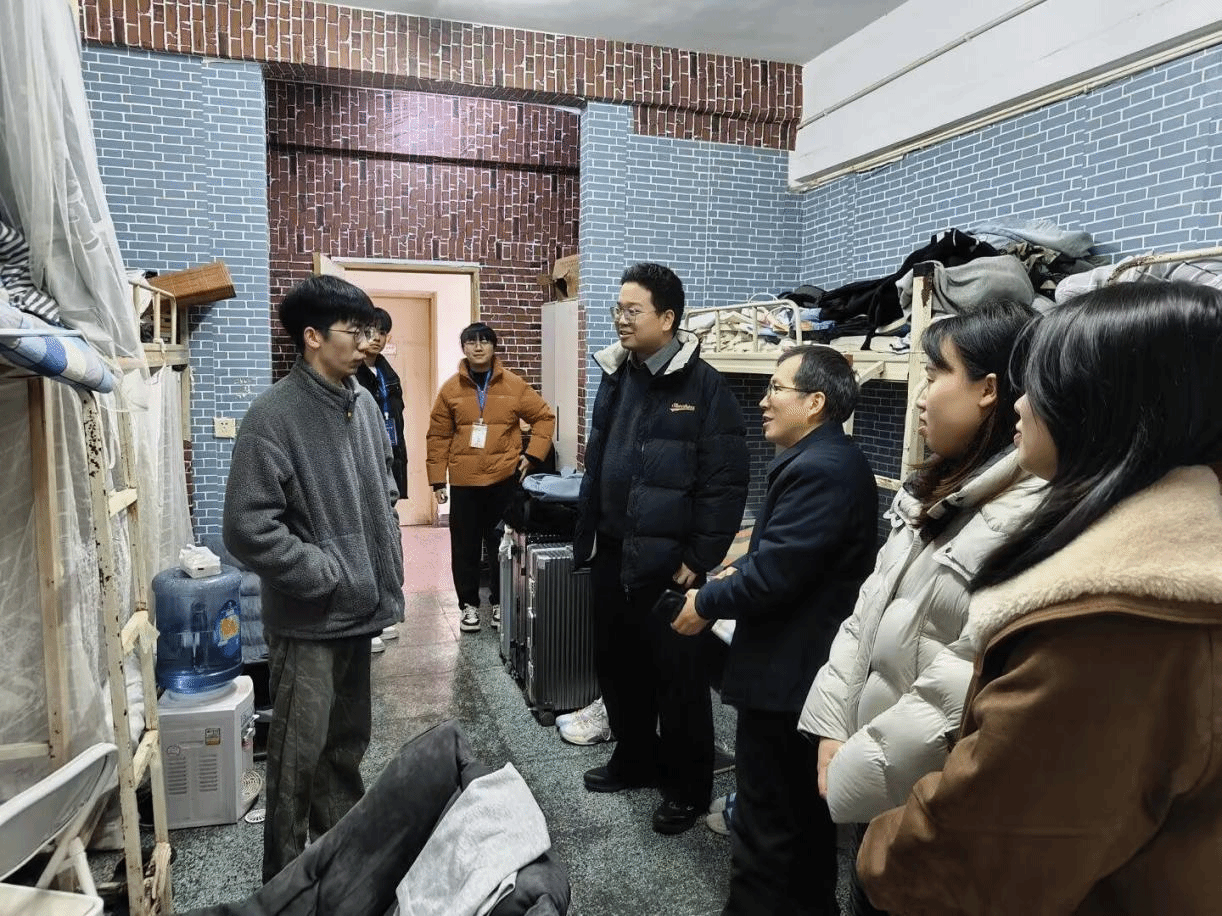 走访过程中,老师们对各宿舍进行了细致排查。一方面,关切询问同学们的生活起居,检查卫生状况,提醒大家养成良好生活习惯;另一方面,着重查看了是否存在违规使用大功率电器等情况,对发现的问题现场提出整改意见,督促学生立刻落实。竭仁贵书记仔细询问同学们的实习工作与求职情况,耐心倾听大家在实习和就业过程中遇到的困难与困惑,并鼓励毕业生主动打破思维局限,积极拓宽求职渠道,充分利用学校搭建的双选会等优质资源平台,勇于尝试新行业、新岗位。郑万敏书记还结合真实案例,耐心为学生讲解了违规用电带来的安全隐患,叮嘱大家务必提高警惕,自觉遵守宿舍安全条例。此外,老师们也贴心提醒同学们要做好冬季防寒保暖,保持宿舍整洁,合理安排作息,共同维护安全舒适的居住环境。