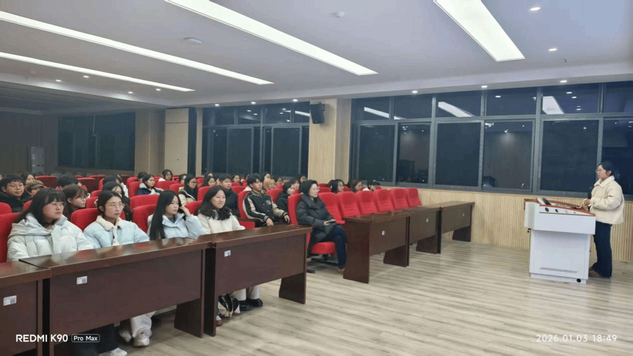2026年1月3日,马克思主义学院在三教楼903教室举办“以初心破迷茫,以脚步写成长”学习经验交流会。学院党委副书记郑万敏、2025级全体学生参加本次会议。
