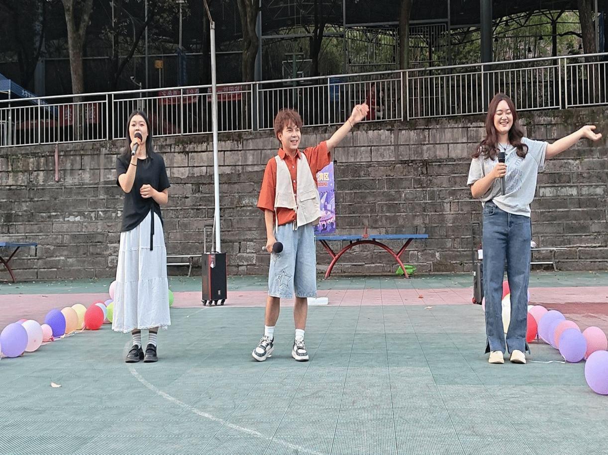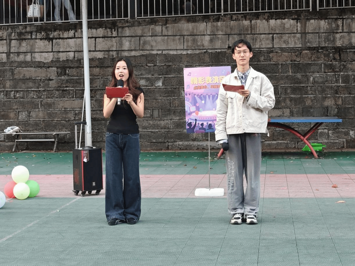 表演环节落幕之后,趣味互动游戏如期登场,将现场氛围推向新的高潮。“关键词猜猜猜”环节,同学们在轻松愉悦的竞猜中重温红色记忆、感悟红色精神,让红色理论自然融入校园生活;“听歌识曲”游戏唤起了大家的童年回忆,现场学子争相举手抢答,欢声笑语、欢呼声此起彼伏;“你划我猜”则充分考验了搭档间的默契与协作能力,每一次精准猜中、每一次默契配合,都引发全场热烈喝彩,欢呼声久久回荡在风雨球场之上。