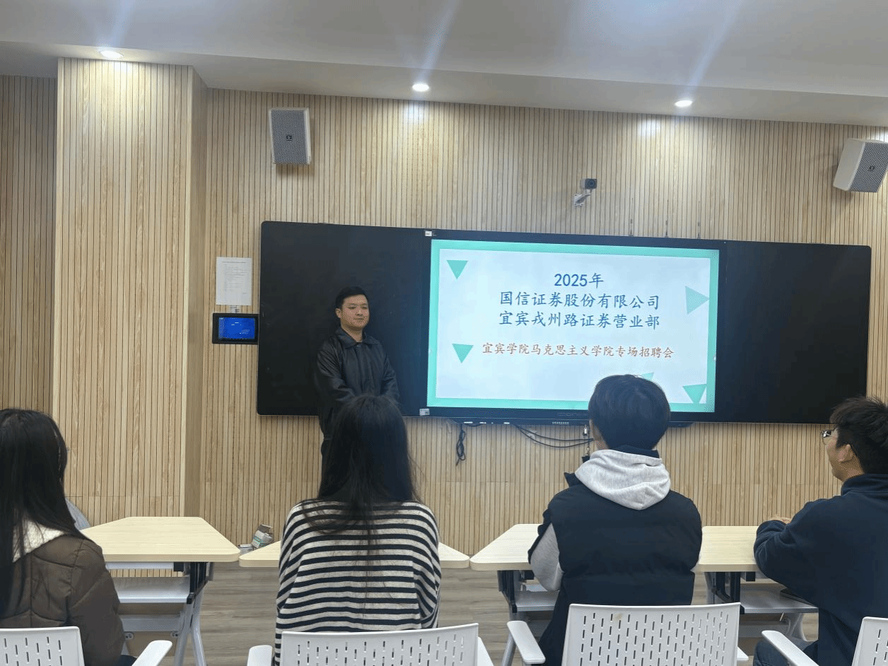 2025年3月12日,为深入贯彻落实就业优先战略,搭建优质企业与高校人才的精准对接平台,近日,国信证券股份有限公司宜宾戎州路证券营业部专场招聘会在马克思主义学院顺利举行。马克思主义学院21级班主任刘鑫及2025届应届毕业生参与此次活动。